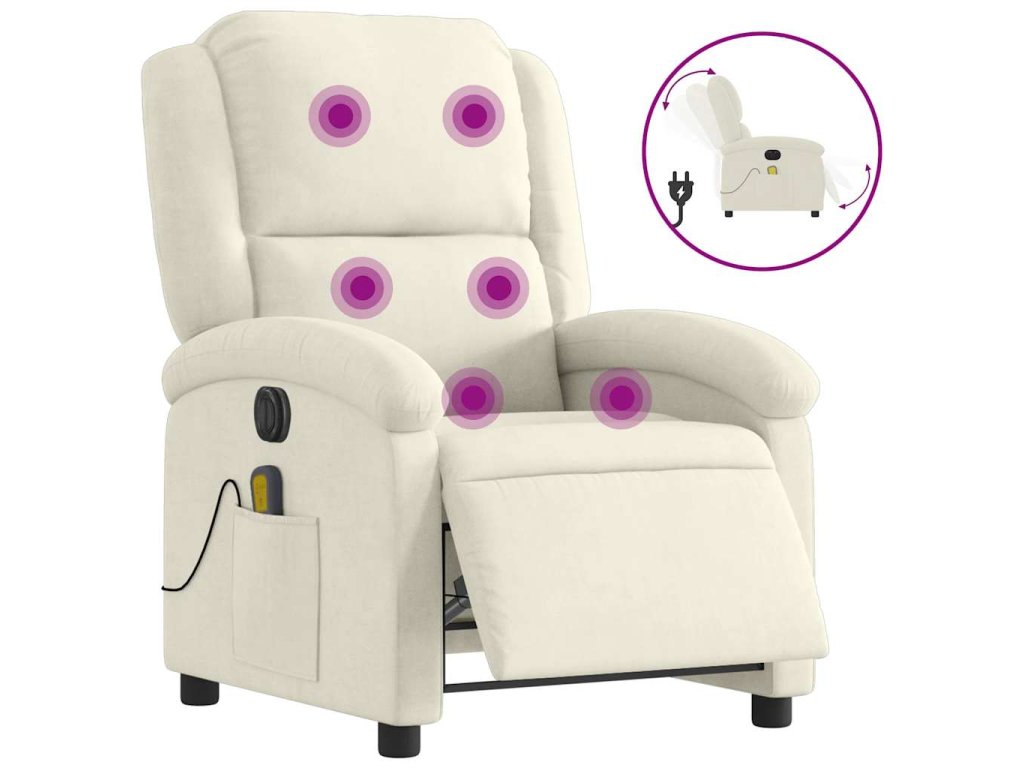 vidaXL Elektrické masážne sklápacie kreslo krémové zamat