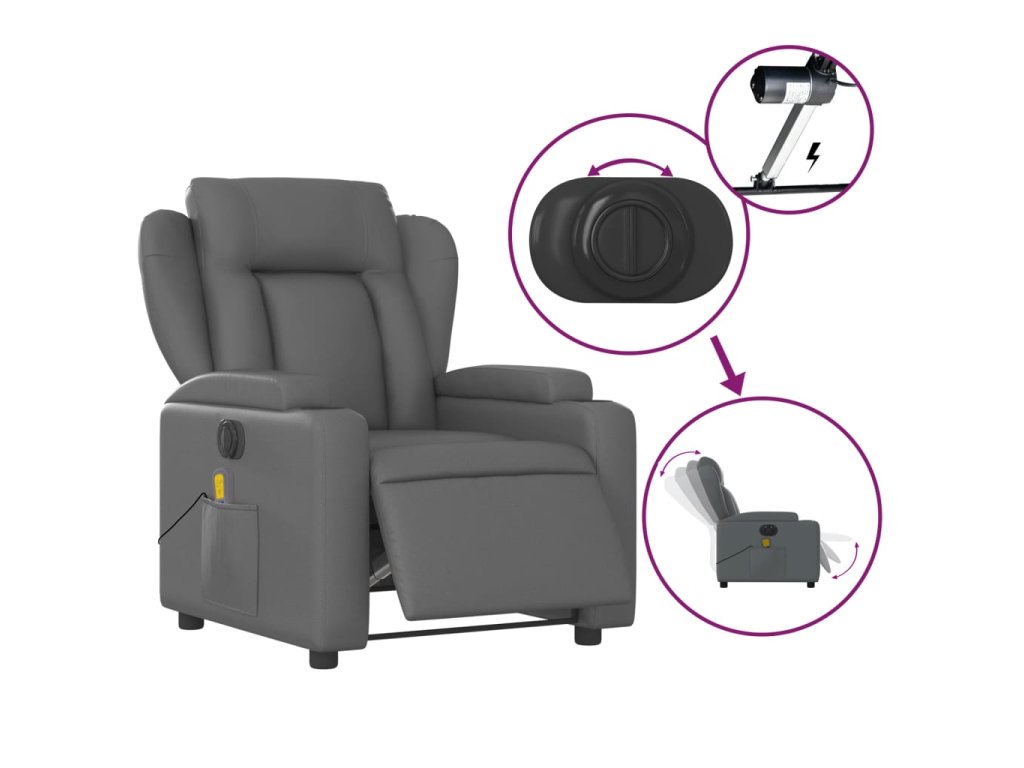vidaXL Elektrické masážne sklápacie kreslo sivé umelá koža