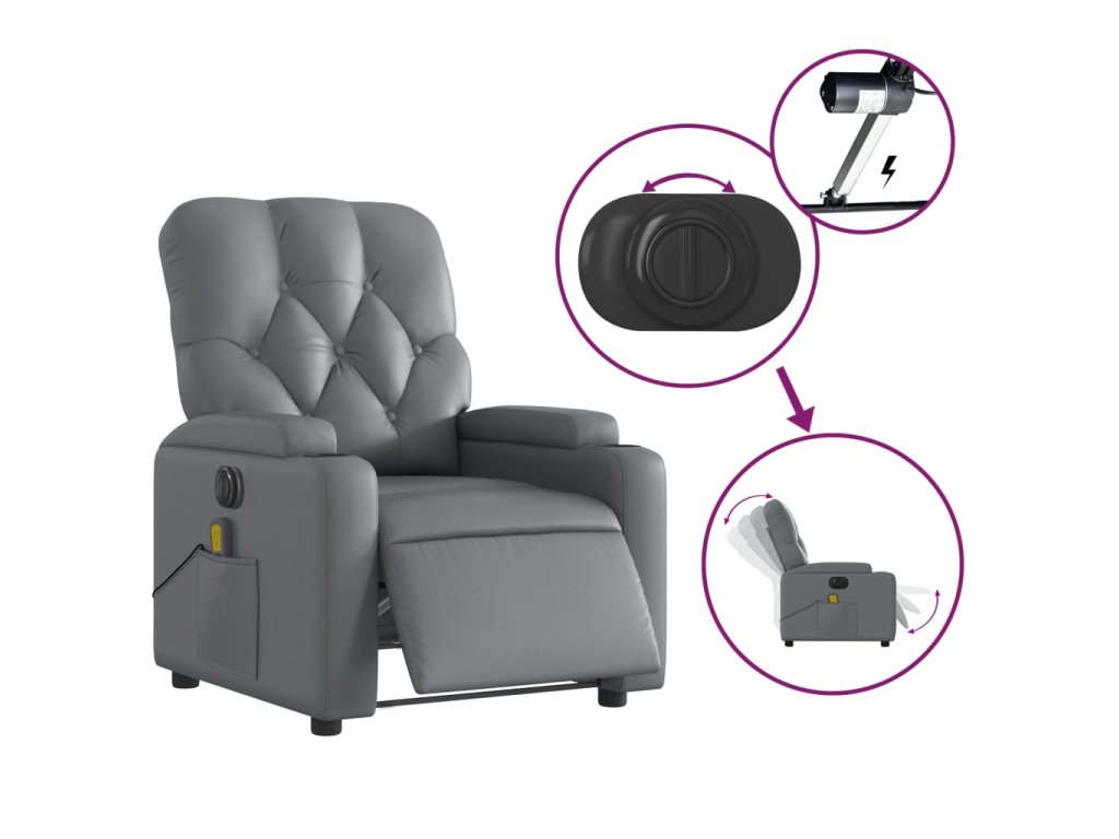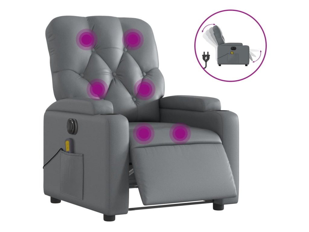 vidaXL Elektrické masážne sklápacie kreslo sivé umelá koža