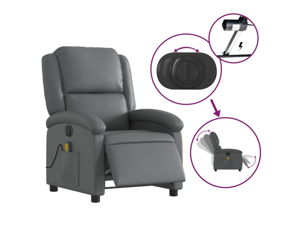 vidaXL Elektrické masážne sklápacie kreslo sivé umelá koža
