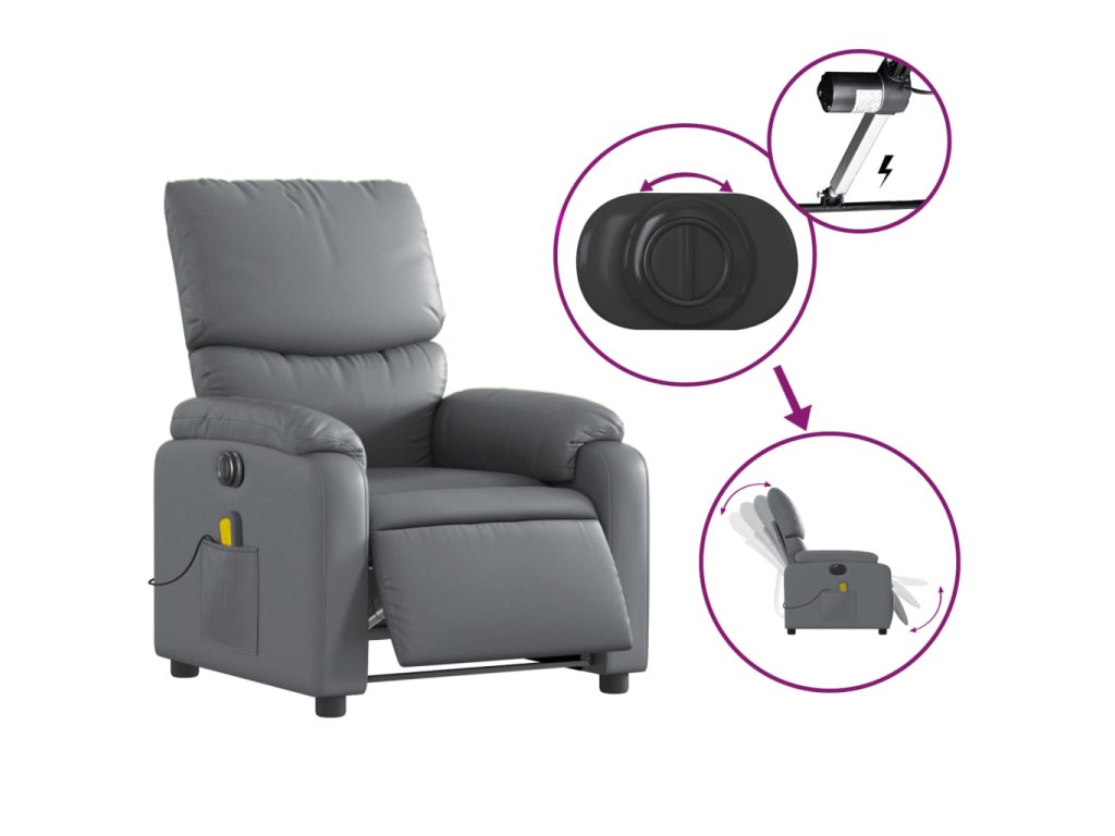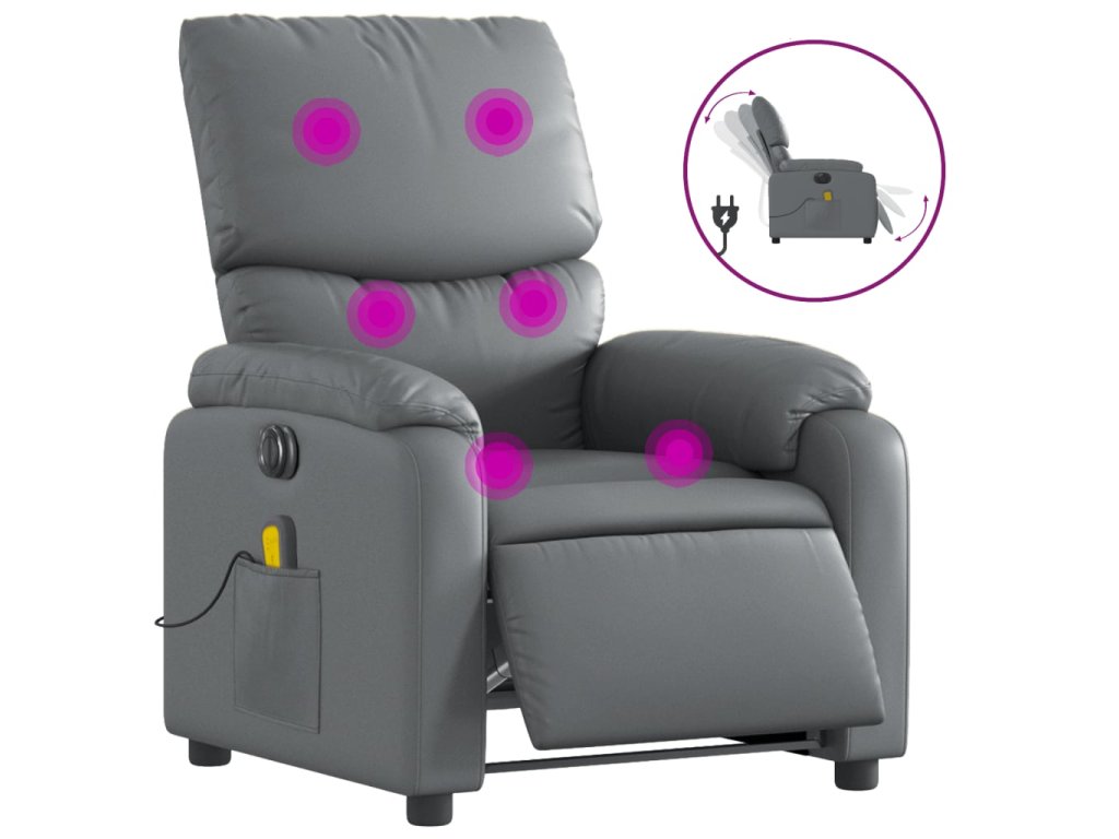 vidaXL Elektrické masážne sklápacie kreslo sivé umelá koža