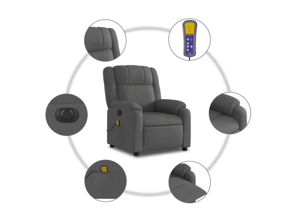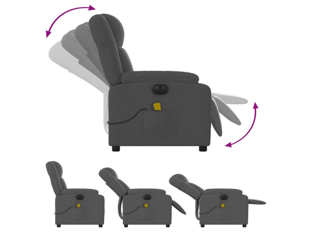 vidaXL Elektrické masážne sklápacie kreslo tmavosivé látka