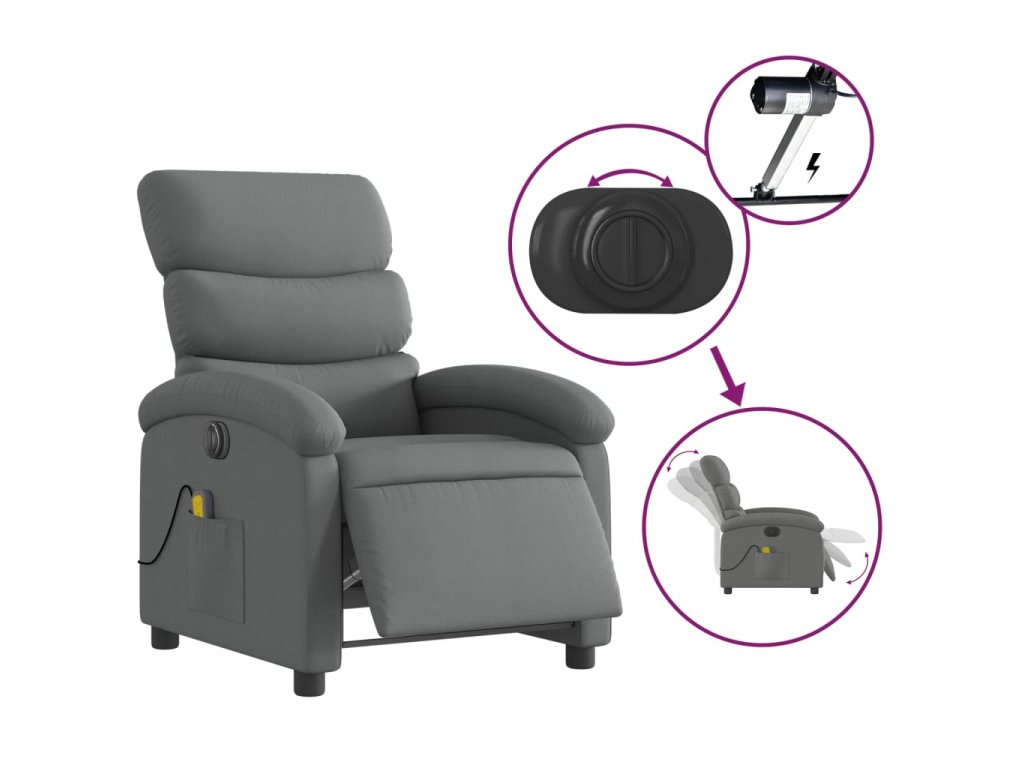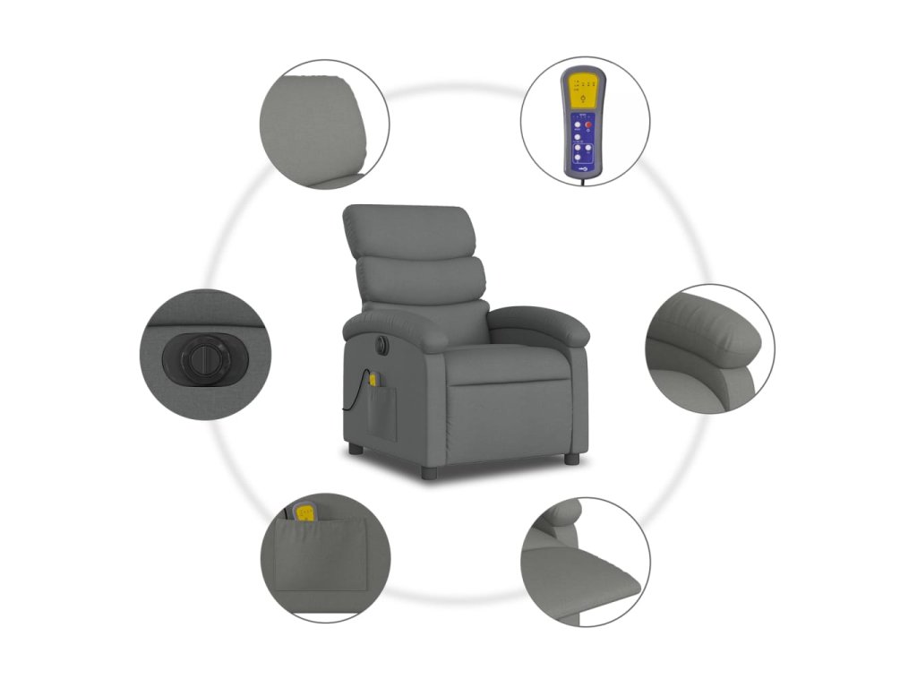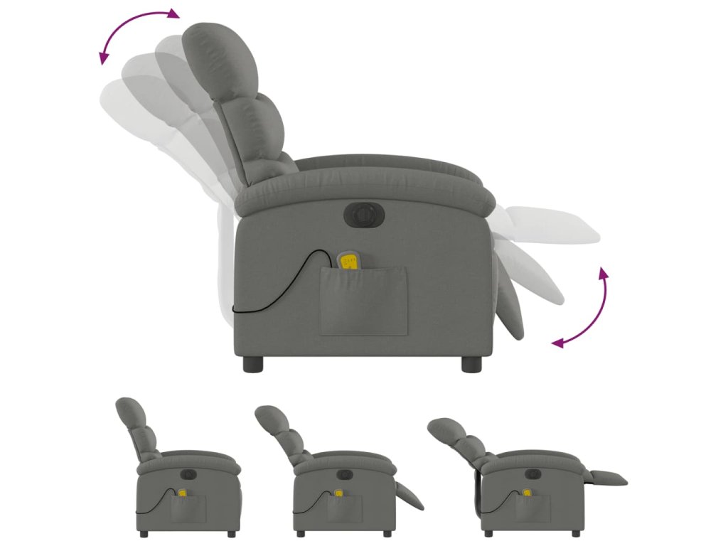 vidaXL Elektrické masážne sklápacie kreslo tmavosivé látka