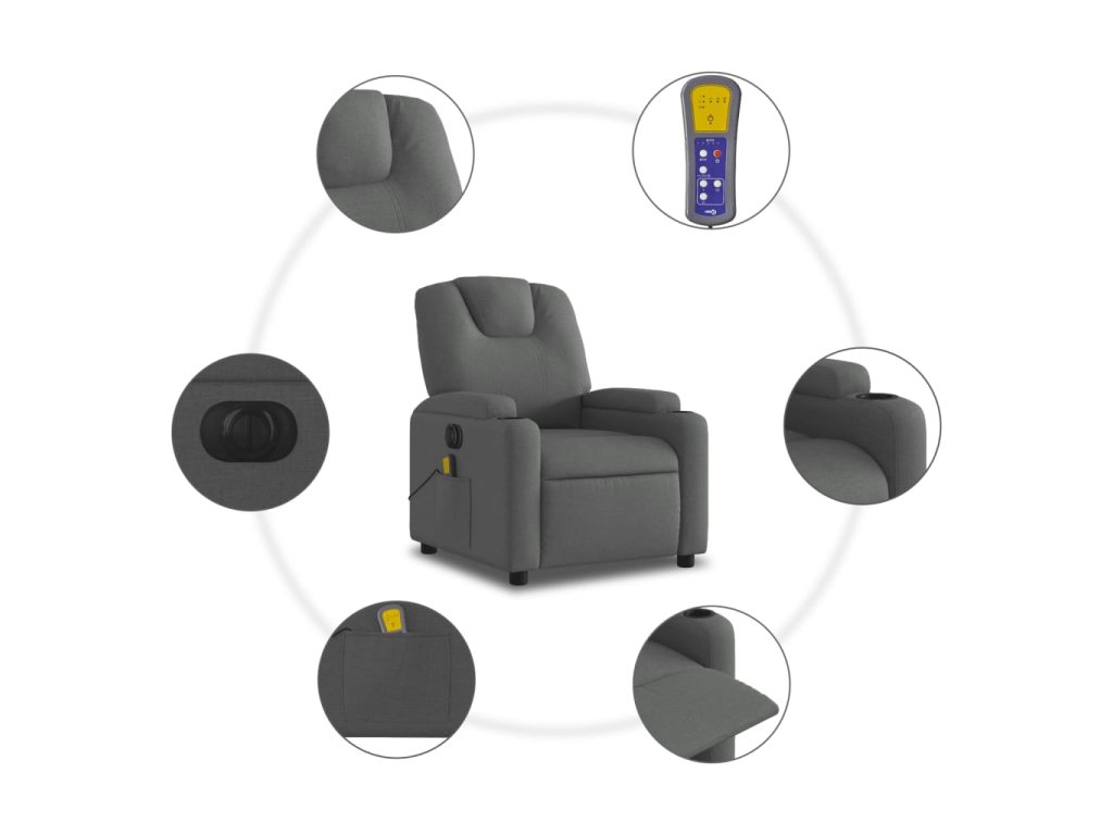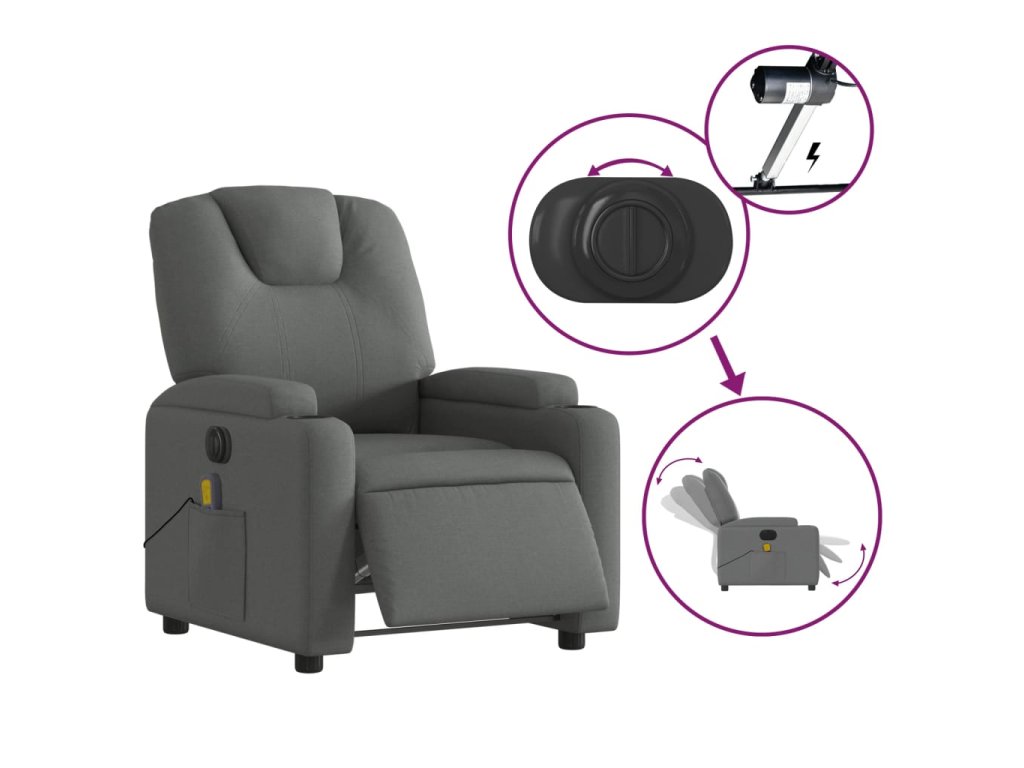 vidaXL Elektrické masážne sklápacie kreslo tmavosivé látka