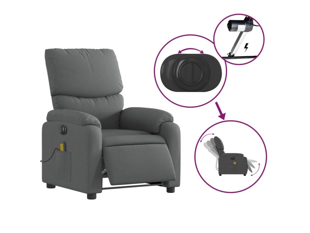 vidaXL Elektrické masážne sklápacie kreslo tmavosivé látka