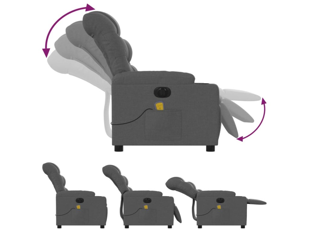 vidaXL Elektrické masážne sklápacie kreslo tmavosivé látka
