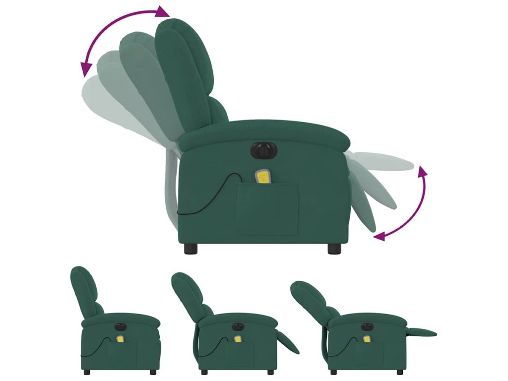 vidaXL Elektrické masážne sklápacie kreslo tmavozelené zamat