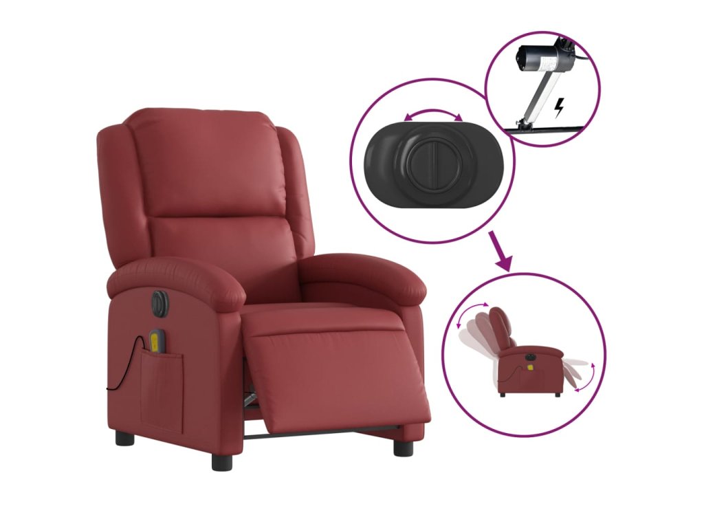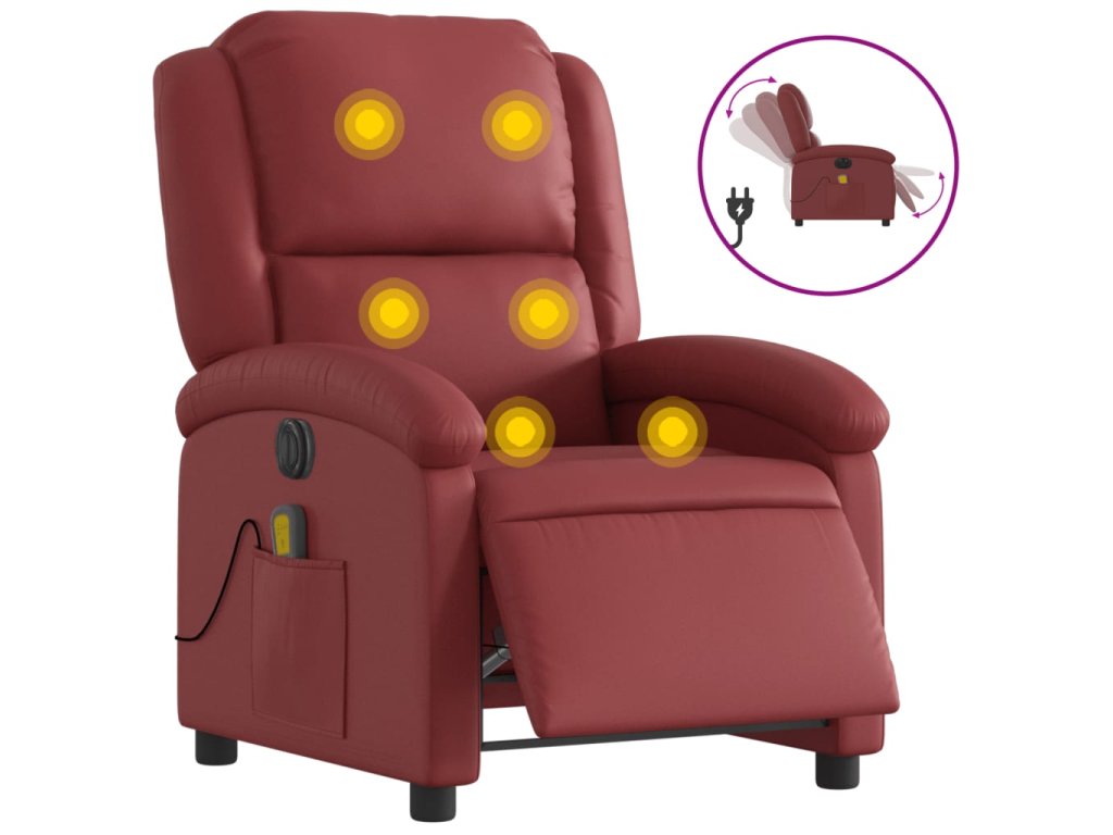 vidaXL Elektrické masážne sklápacie kreslo vínovo červené umelá koža
