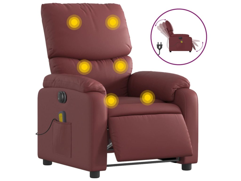 vidaXL Elektrické masážne sklápacie kreslo vínovo červené umelá koža