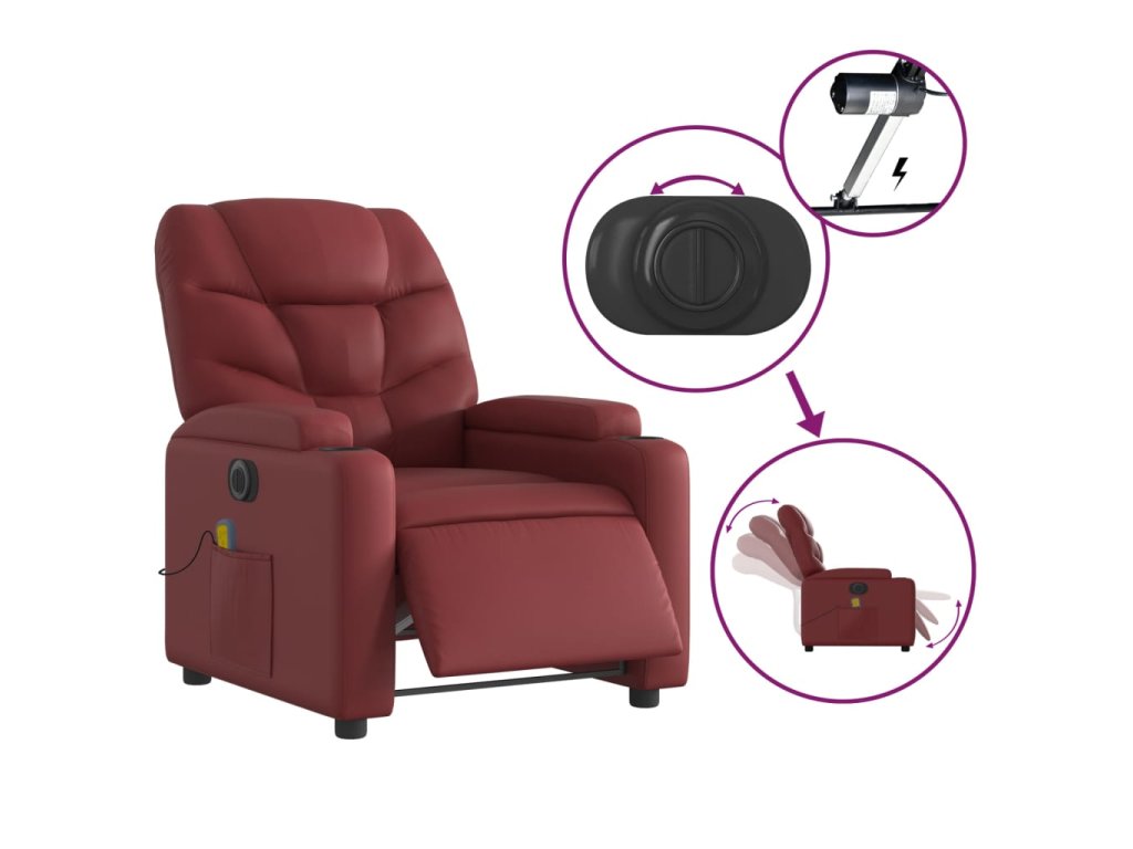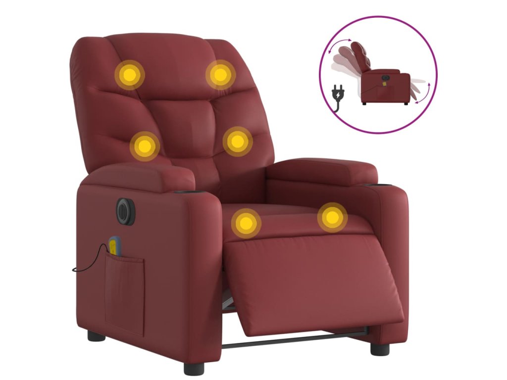 vidaXL Elektrické masážne sklápacie kreslo vínovo červené umelá koža