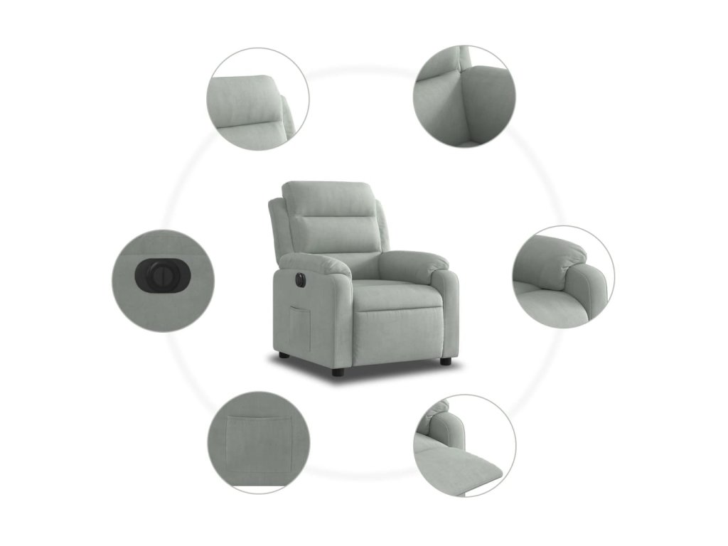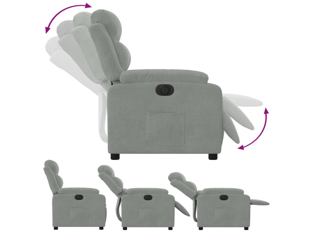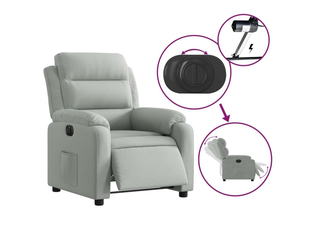 vidaXL Elektrické sklápacie kreslo, svetlosivé, zamat
