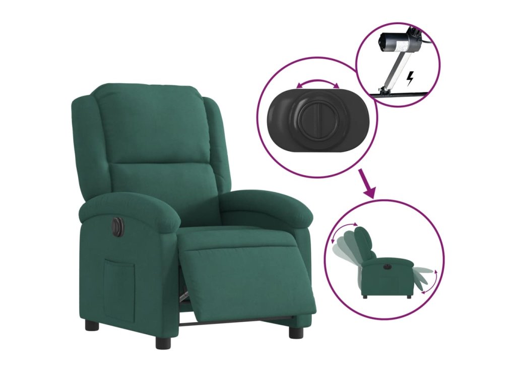 vidaXL Elektrické sklápacie kreslo, tmavozelené, zamat