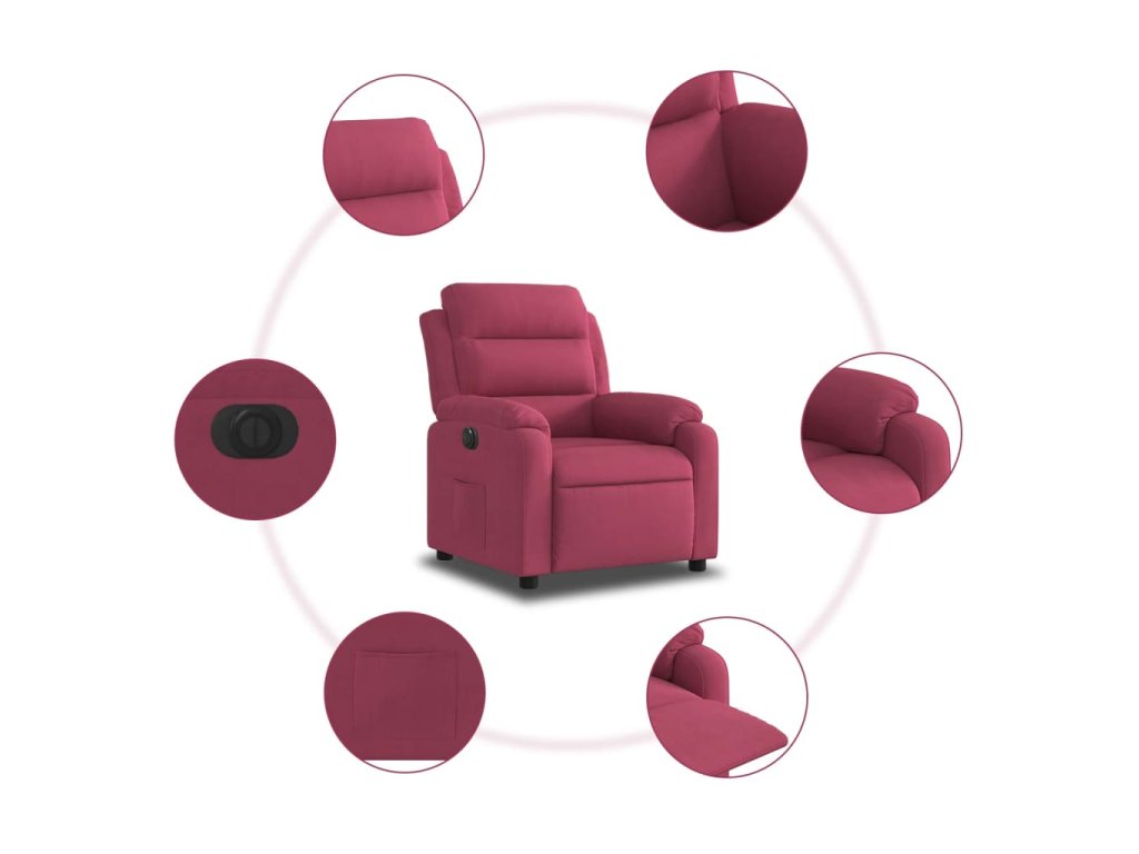 vidaXL Elektrické sklápacie kreslo, vínovo červené, zamat