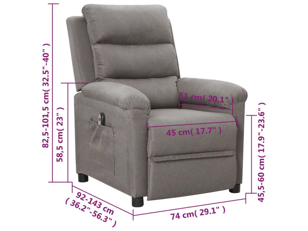 vidaXL Elektrické sklápacie kreslo bledosivé látka
