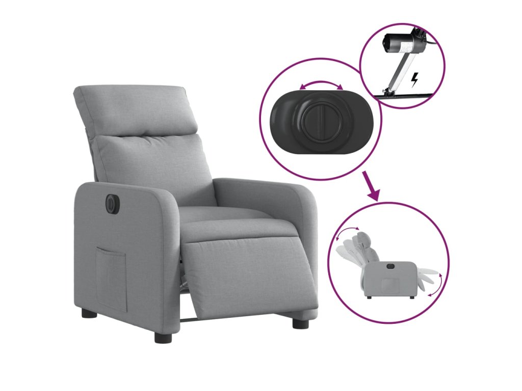 vidaXL Elektrické sklápacie kreslo bledosivé látka