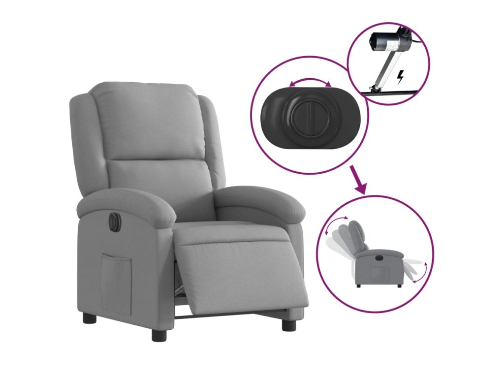 vidaXL Elektrické sklápacie kreslo bledosivé látka