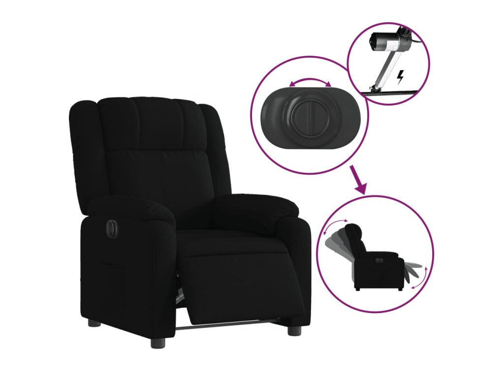 vidaXL Elektrické sklápacie kreslo čierne látkové