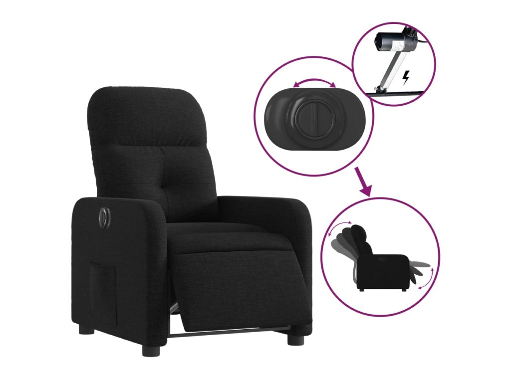 vidaXL Elektrické sklápacie kreslo čierne látkové