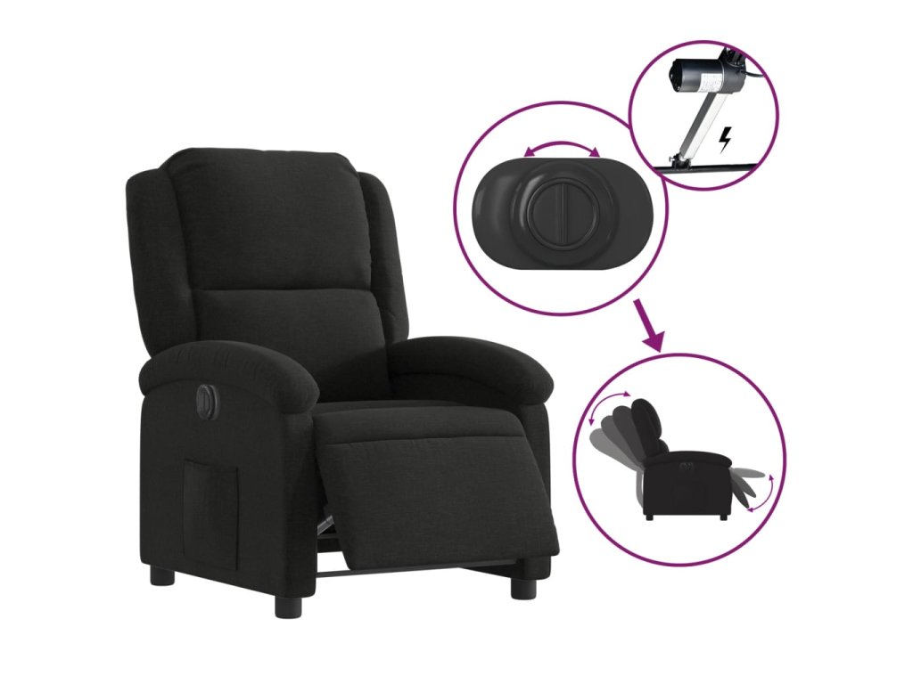 vidaXL Elektrické sklápacie kreslo čierne látkové