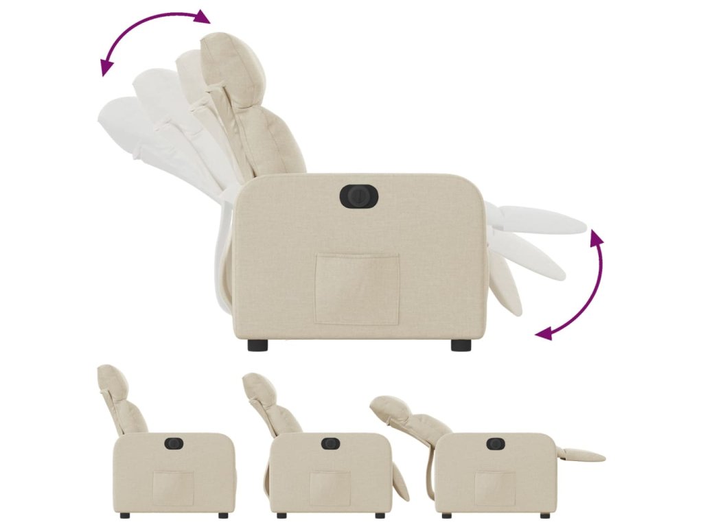 vidaXL Elektrické sklápacie kreslo krémové látka