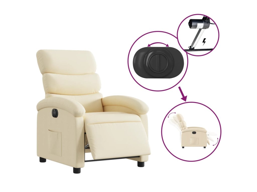 vidaXL Elektrické sklápacie kreslo krémové látka