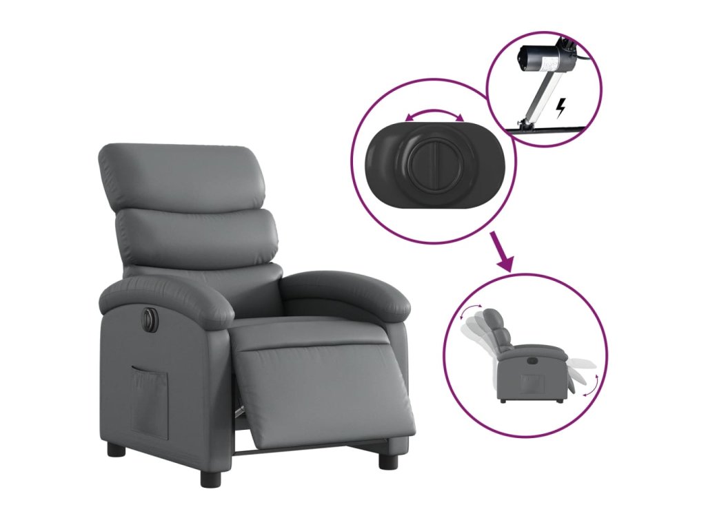 vidaXL Elektrické sklápacie kreslo sivé umelá koža
