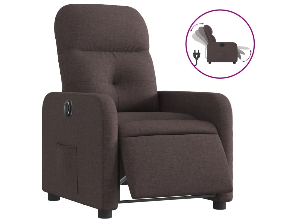 vidaXL Elektrické sklápacie kreslo tmavohnedé látkové