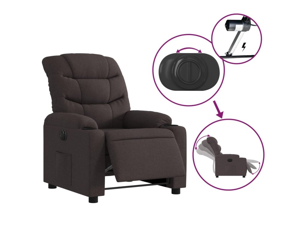 vidaXL Elektrické sklápacie kreslo tmavohnedé látkové