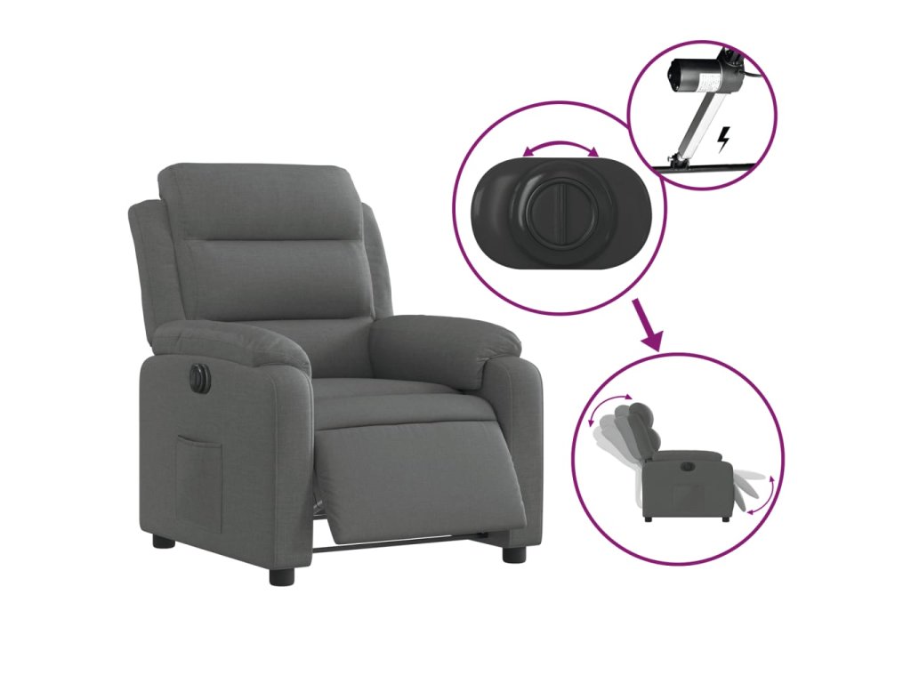 vidaXL Elektrické sklápacie kreslo tmavosivé látka
