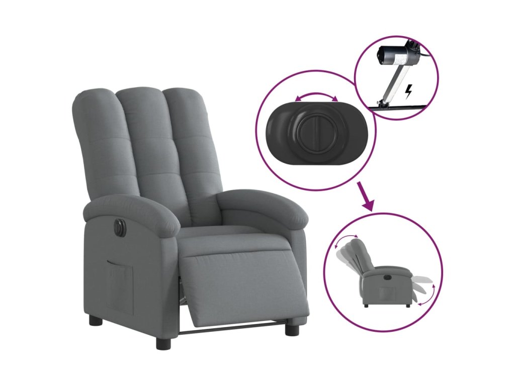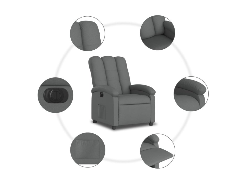 vidaXL Elektrické sklápacie kreslo tmavosivé látka