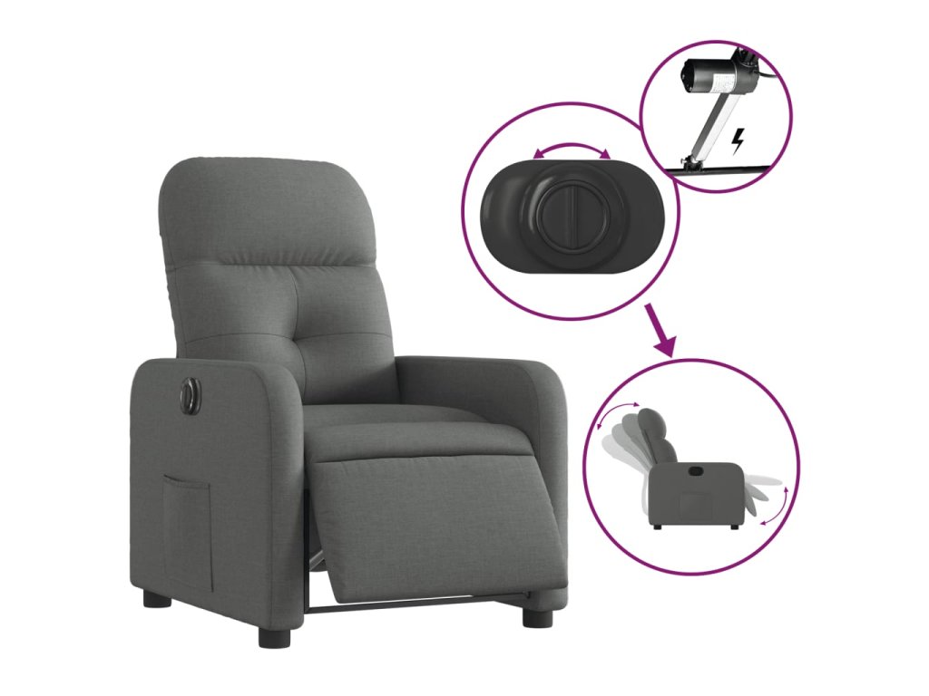 vidaXL Elektrické sklápacie kreslo tmavosivé látka