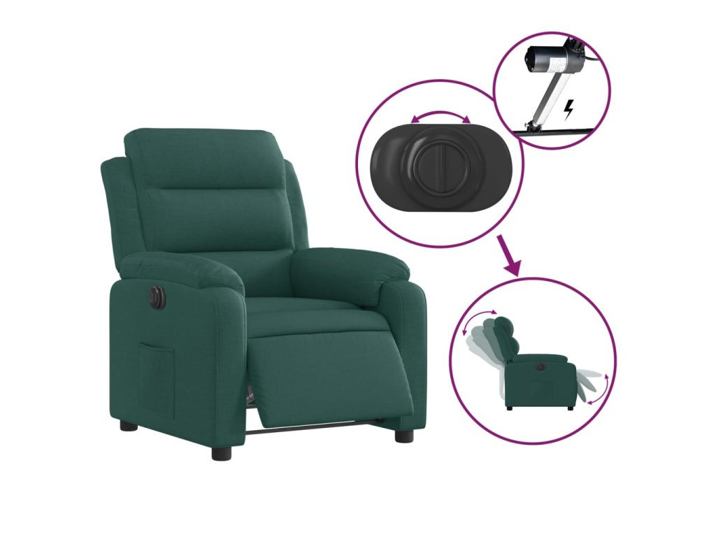 vidaXL Elektrické sklápacie kreslo tmavozelené látkové