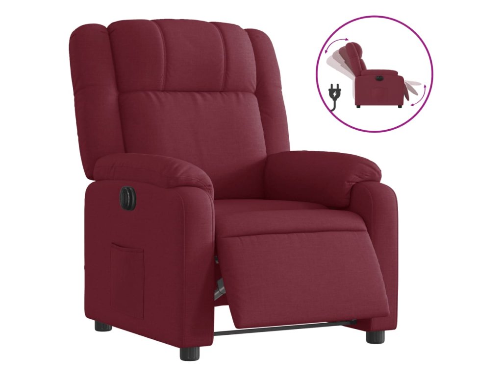 vidaXL Elektrické sklápacie kreslo vínovo-červené látkové