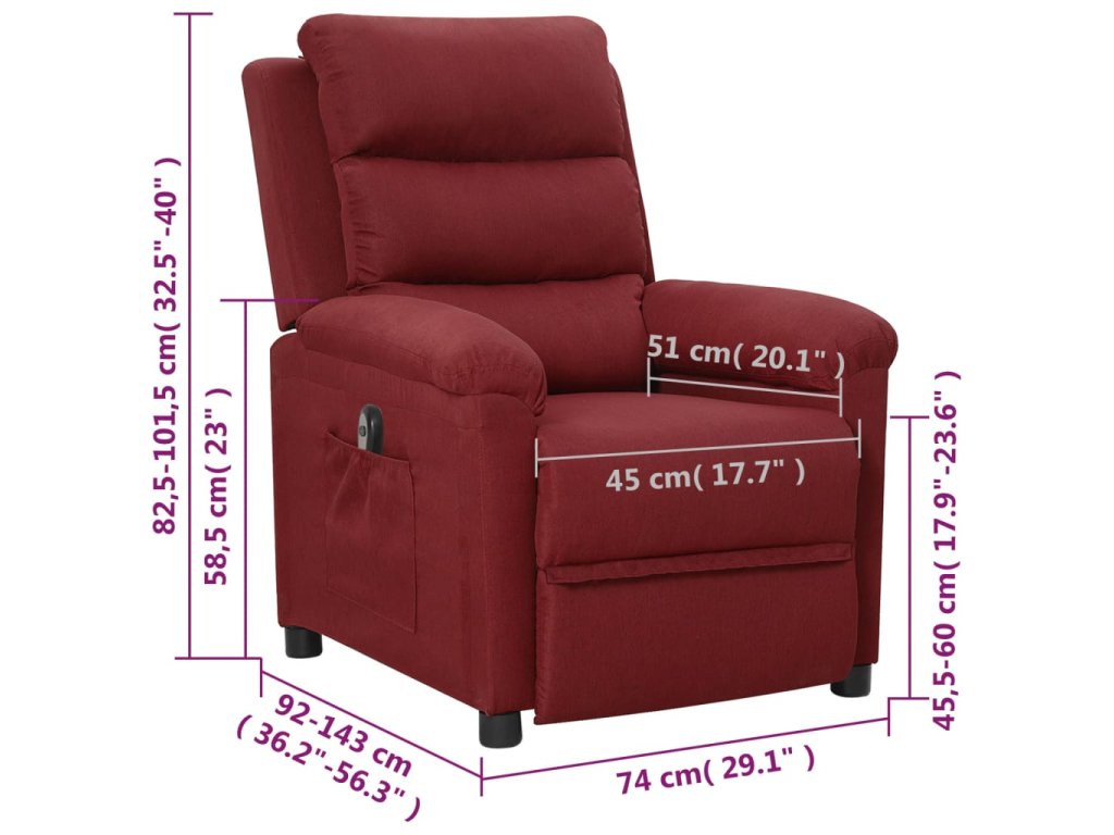vidaXL Elektrické sklápacie kreslo vínovo-červené látkové