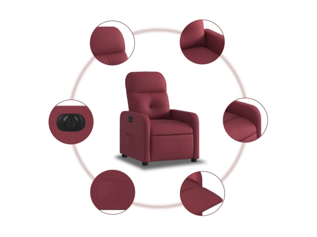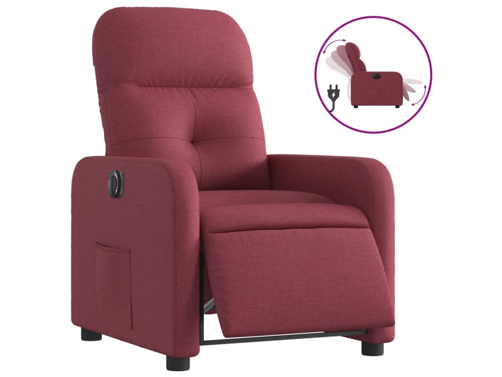 vidaXL Elektrické sklápacie kreslo vínovo-červené látkové