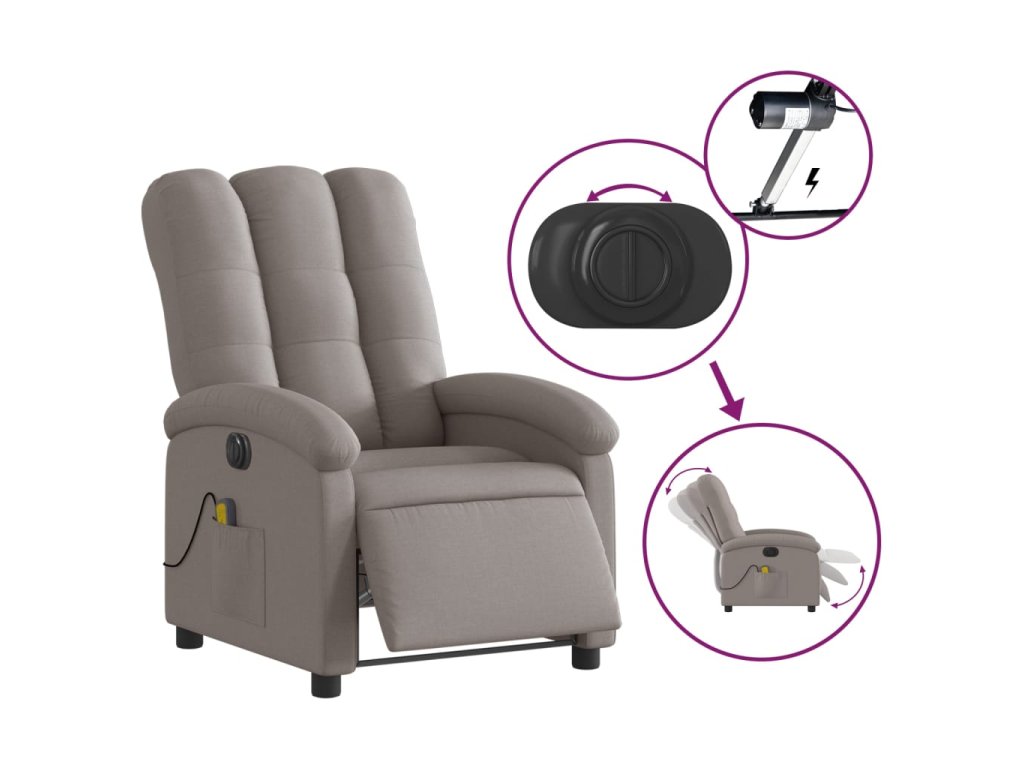 vidaXL Elektrické sklápacie masážne kreslo sivohnedé látka