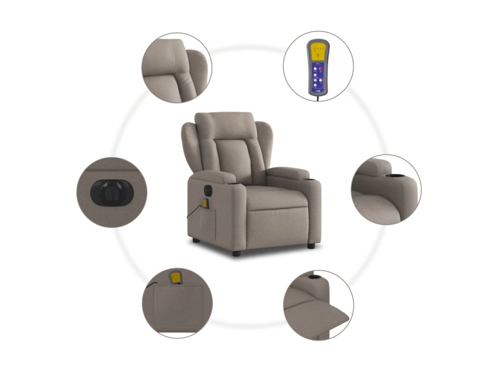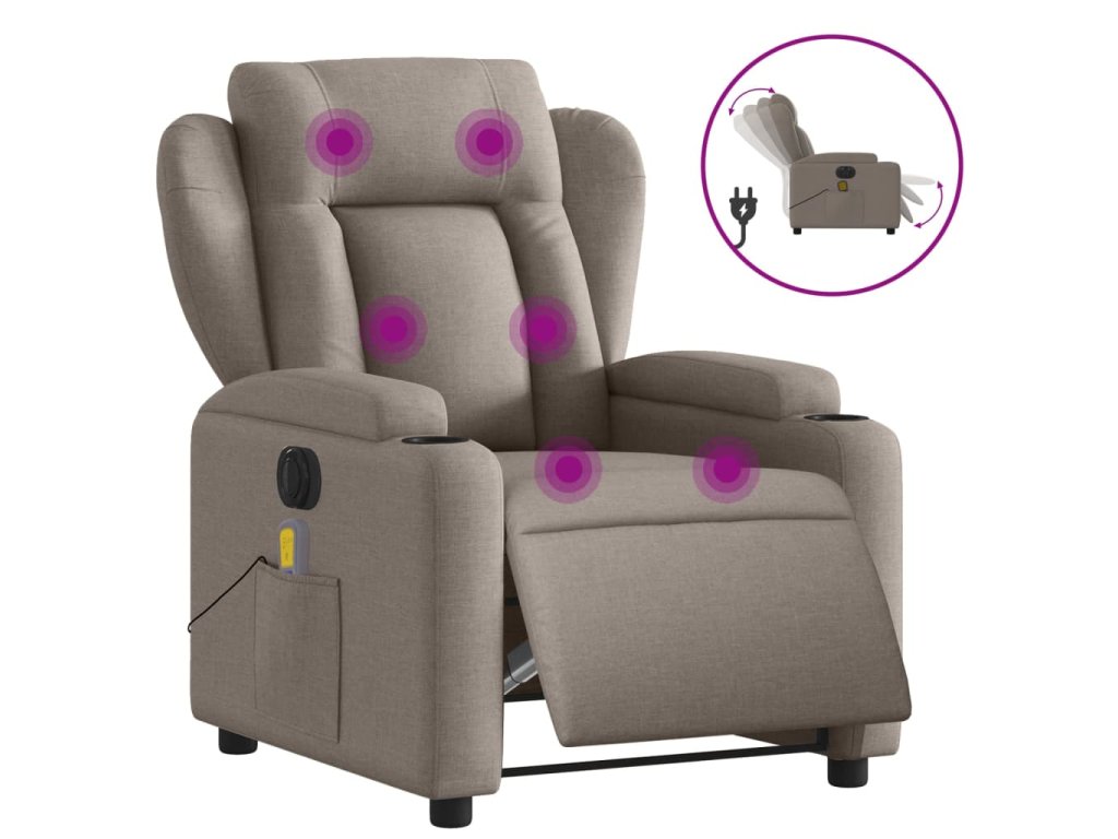vidaXL Elektrické sklápacie masážne kreslo sivohnedé látka