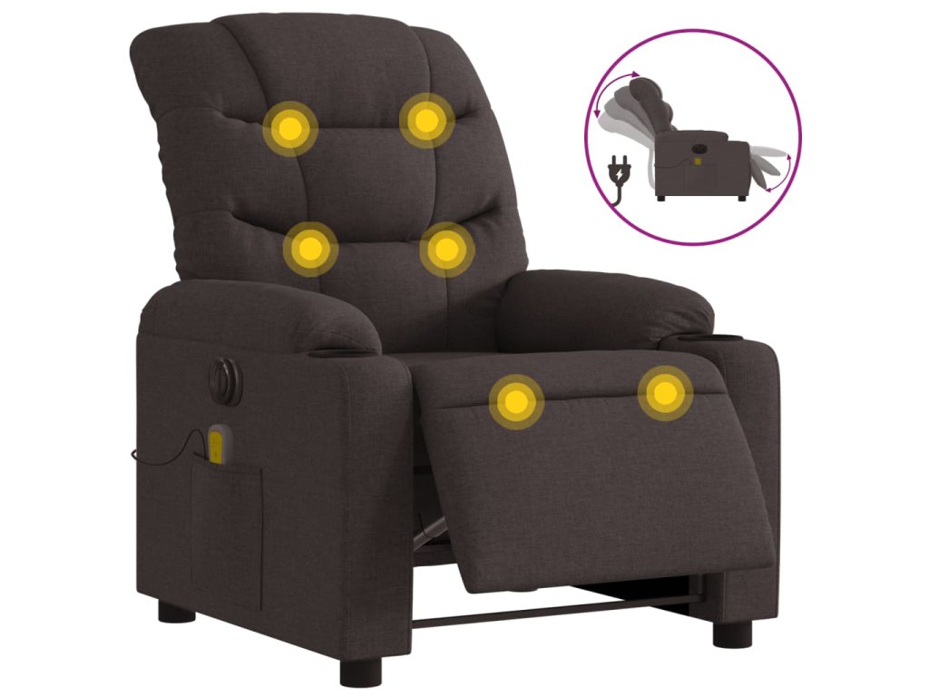 vidaXL Elektrické sklápacie masážne kreslo tmavohnedé látka