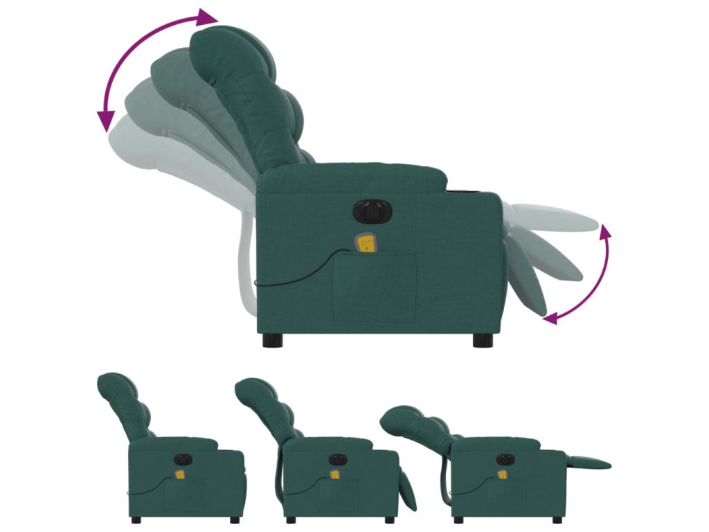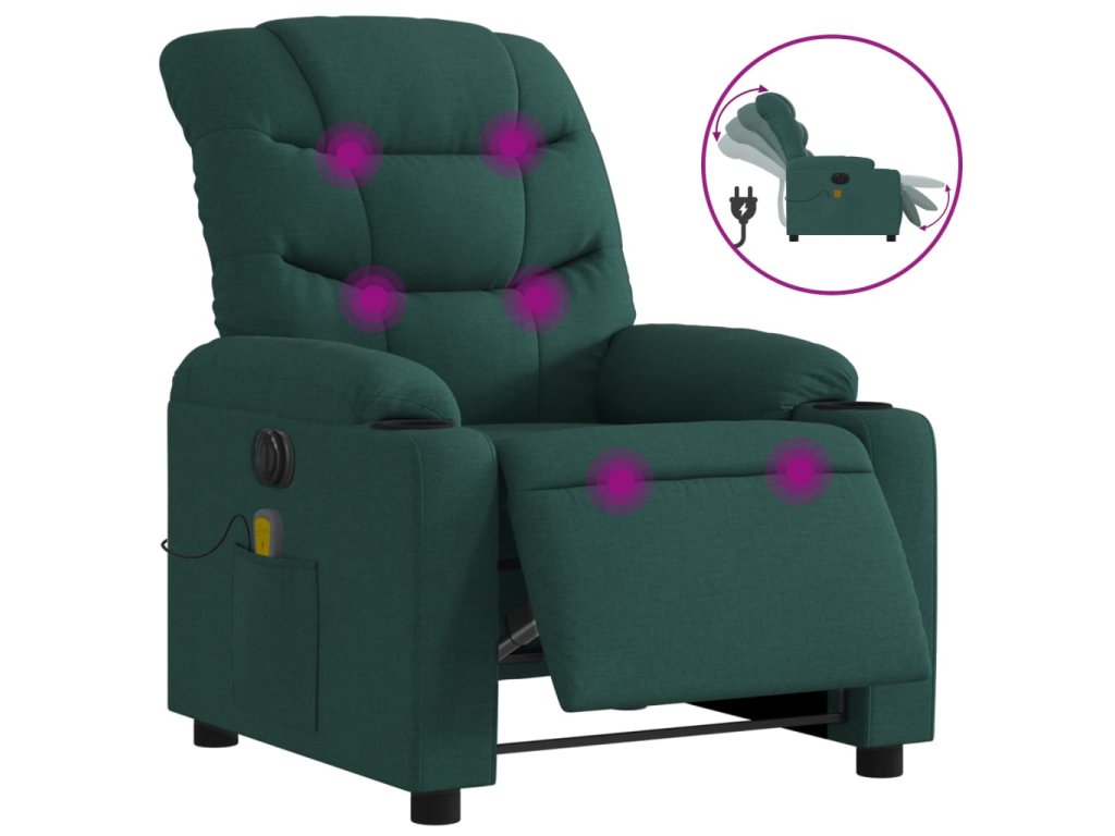 vidaXL Elektrické sklápacie masážne kreslo tmavozelené látka