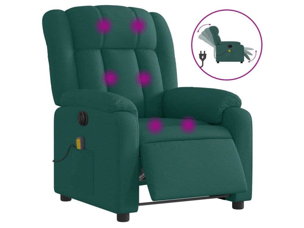 vidaXL Elektrické sklápacie masážne kreslo tmavozelené látka