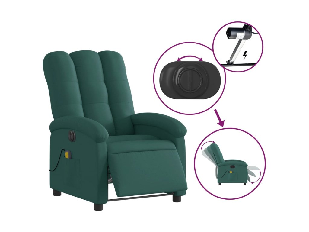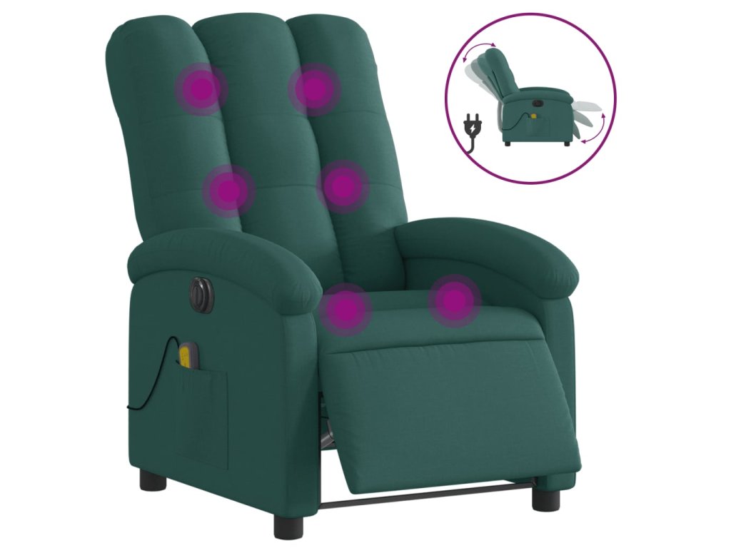 vidaXL Elektrické sklápacie masážne kreslo tmavozelené látka