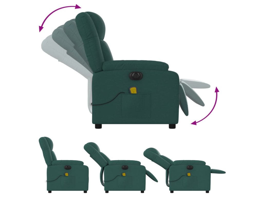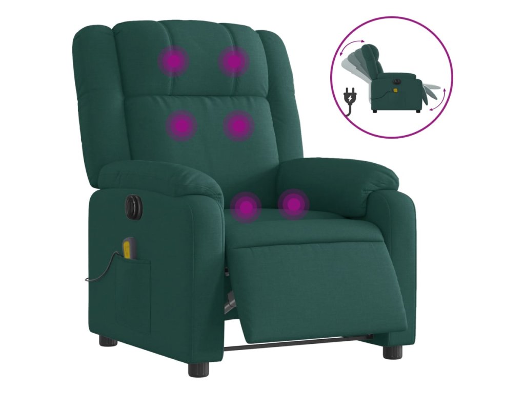 vidaXL Elektrické sklápacie masážne kreslo tmavozelené látka