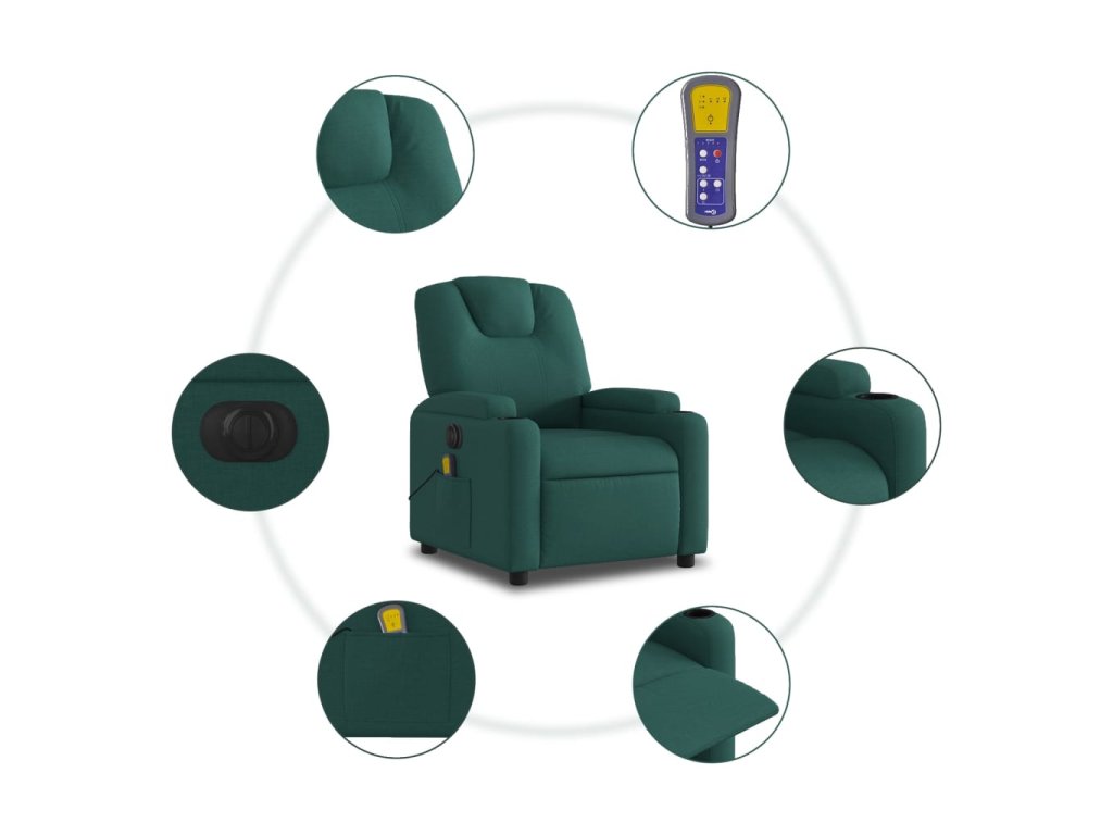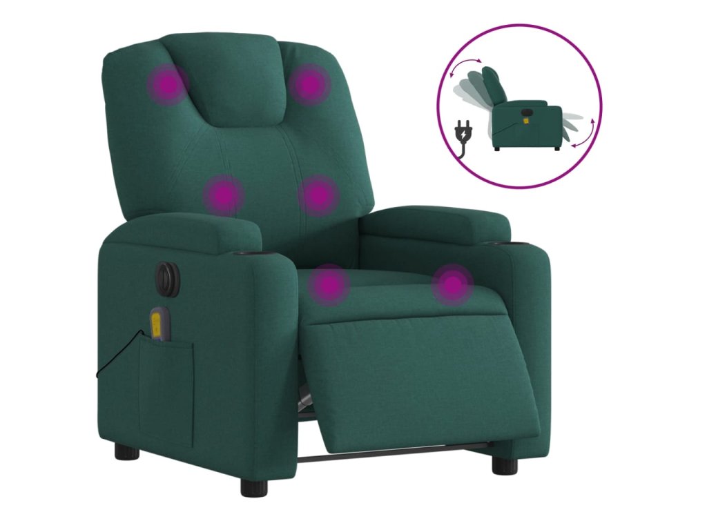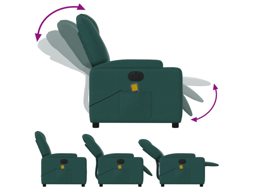 vidaXL Elektrické sklápacie masážne kreslo tmavozelené látka