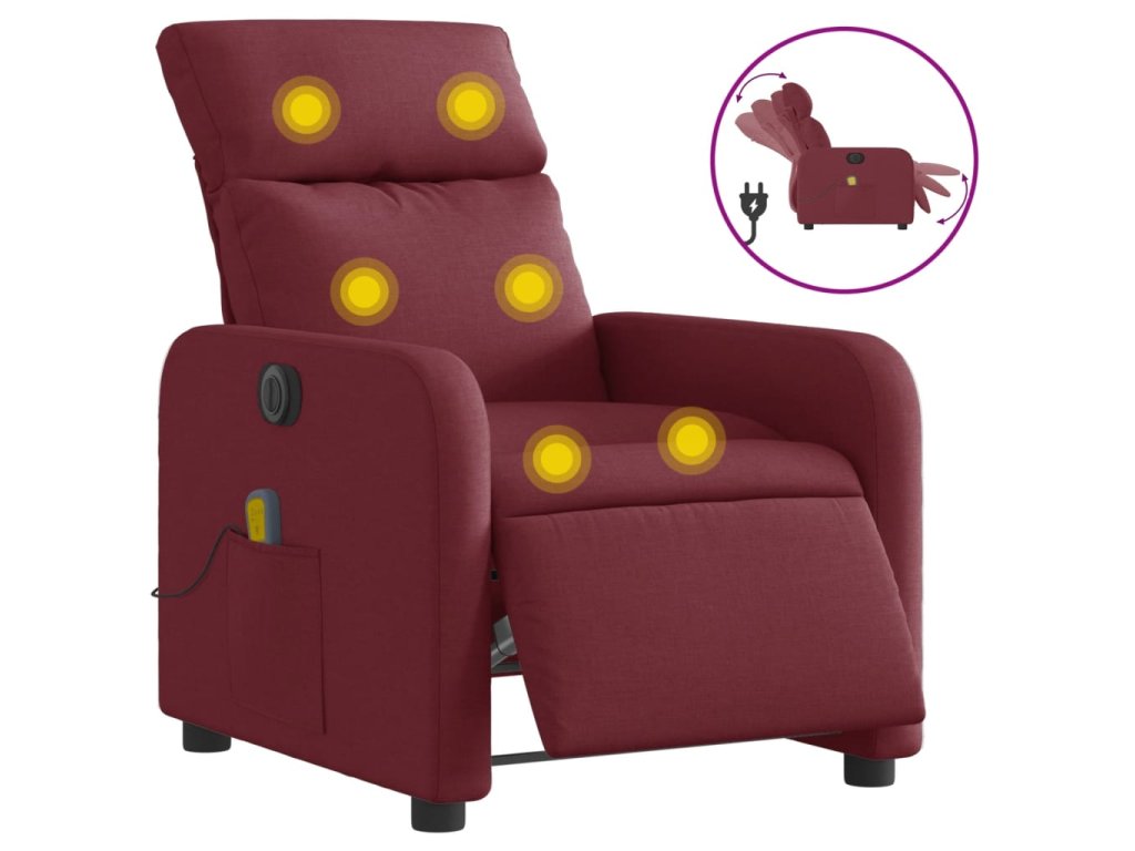 vidaXL Elektrické sklápacie masážne kreslo vínové látka