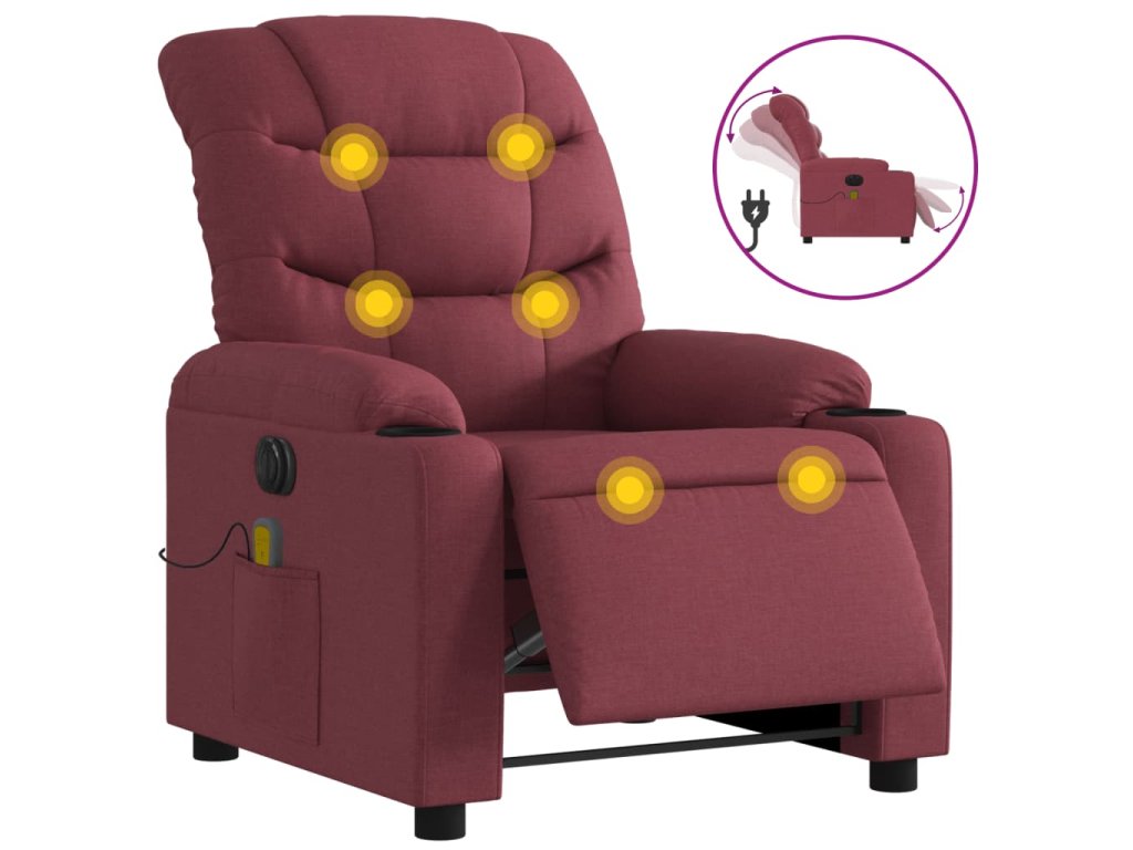 vidaXL Elektrické sklápacie masážne kreslo vínové látka