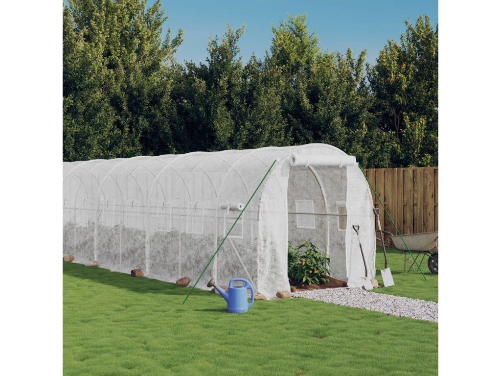 vidaXL Fóliovník s oceľovým rámom biely 12 m² 6x2x2 m