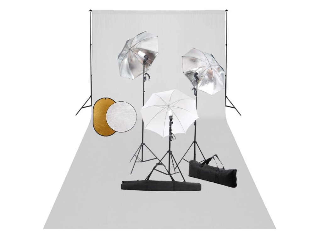 Teleskopický systém pozadia je nastaviteľný na šírku a výšku, aby vyhovoval vašim potrebám. V kombinácii s pozadím je ideálny na fotografovanie a filmovanie. Použitím žiaroviek denného svetla s farebnou teplotou 5500 Kelvinov je sada osvetlenia schopná zachytiť predmet prirodzeným spôsobom. Lampu môžete pripevniť na statív a dosiahnuť maximálnu výšku 230 cm. Dva biele dáždniky poskytujú mäkké svetlo, takže sa vyhnete výrazným tieňom. Statív má navyše štandardný 1/4" závit pre všetky analógové a digitálne fotoaparáty. Sada reflektorov obsahuje okrúhly reflektor 5 v 1 a elipsový reflektor 2 v 1. Každý reflektor je dodávaný s rôznymi povrchovými panelmi. Môže pracovať s rôznymi kombináciami pre teplejšie alebo chladnejšie svetlá. S pribalený prenosným vakom sa štúdiová súprava ľahko skladuje a prepravuje.