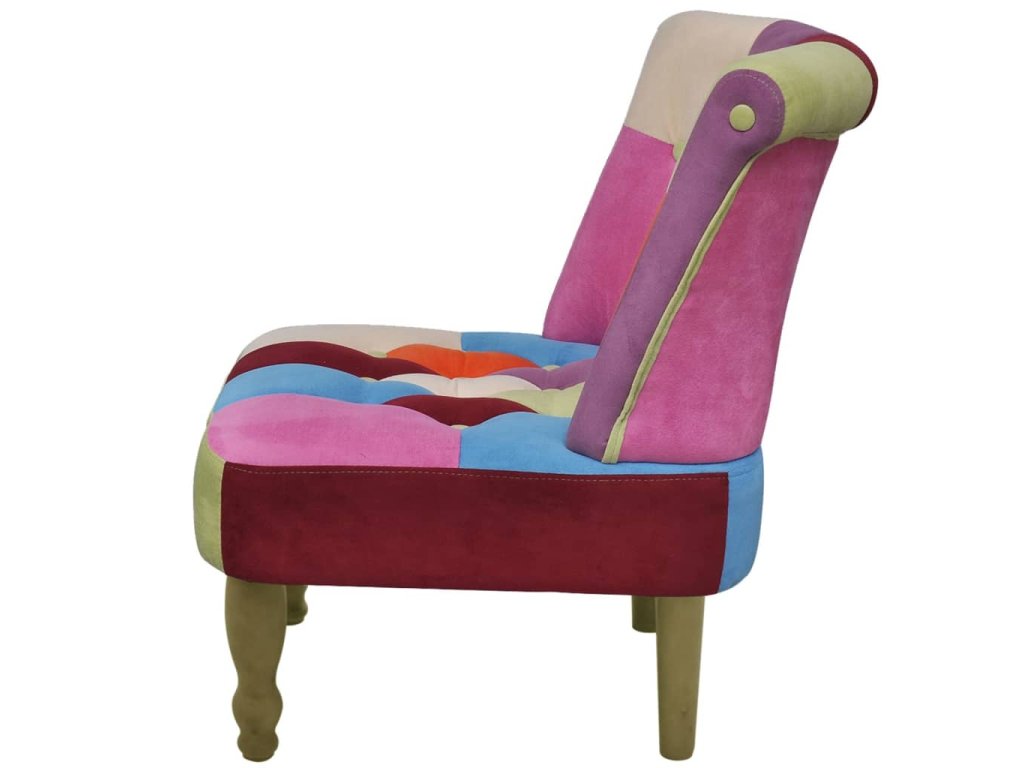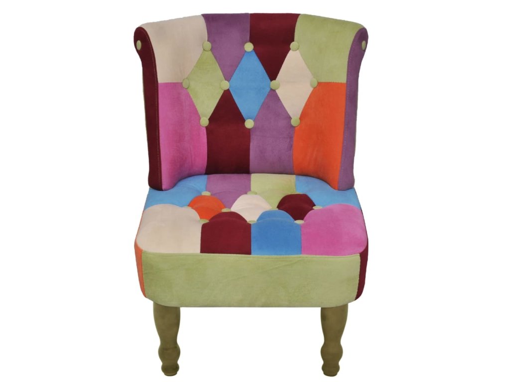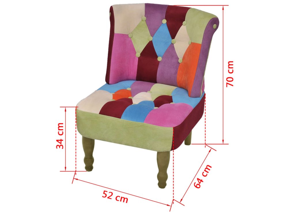 Francúzske kreslo má poťah v štýle patchwork v rôznych veselých farbách, vďaka čomu predstavuje zaujímavý kúsok nábytku, ktorý ozdobí každý interiér, a je ako stvorené do spálne, haly, chodby či obývačky. Farebný poťah sa hodí do rôznych štýlov interiérového zariadenia a zaručene rozžiari váš príbytok.