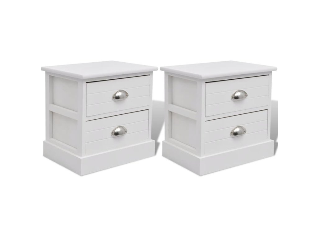 Každý z týchto kompaktných stolíkov má 2 hladko sa otvárajúce zásuvky, ktoré poskytujú dostatok priestoru na to, aby ste mali drobnosti uložené a na dosah ruky. Tieto stolíky, ktoré sú vyrobené z vysokokvalitných materiálov, sú veľmi odolné.