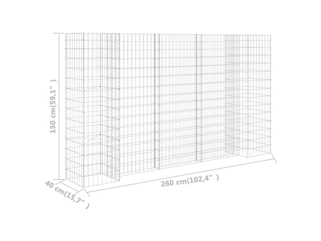 Robustný gabión je určený na to, aby sa do neho vložili kamene alebo štrk. Gabión je vyrobený z oceľového drôtu, ktorý je odolný voči hrdzi a poveternostným vplyvom, vďaka čomu je veľmi stabilný a trvácny. Mriežku tvoria priečne a pozdĺžne drôty, ktoré sú zvarené na každom prieseku a gabiónu prinášajú mimoriadnu stabilitu.